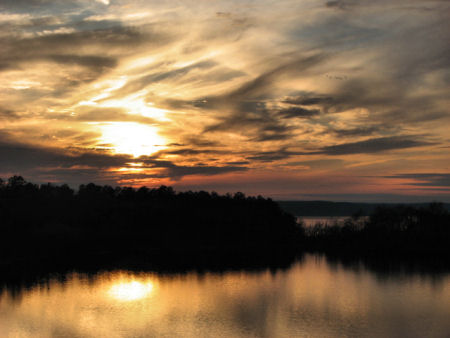 site at the side of a lake and headed toward Texas. |