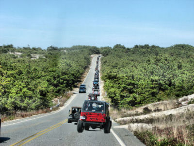The cops stopped traffic and let the jeeps drive through. People were waving and